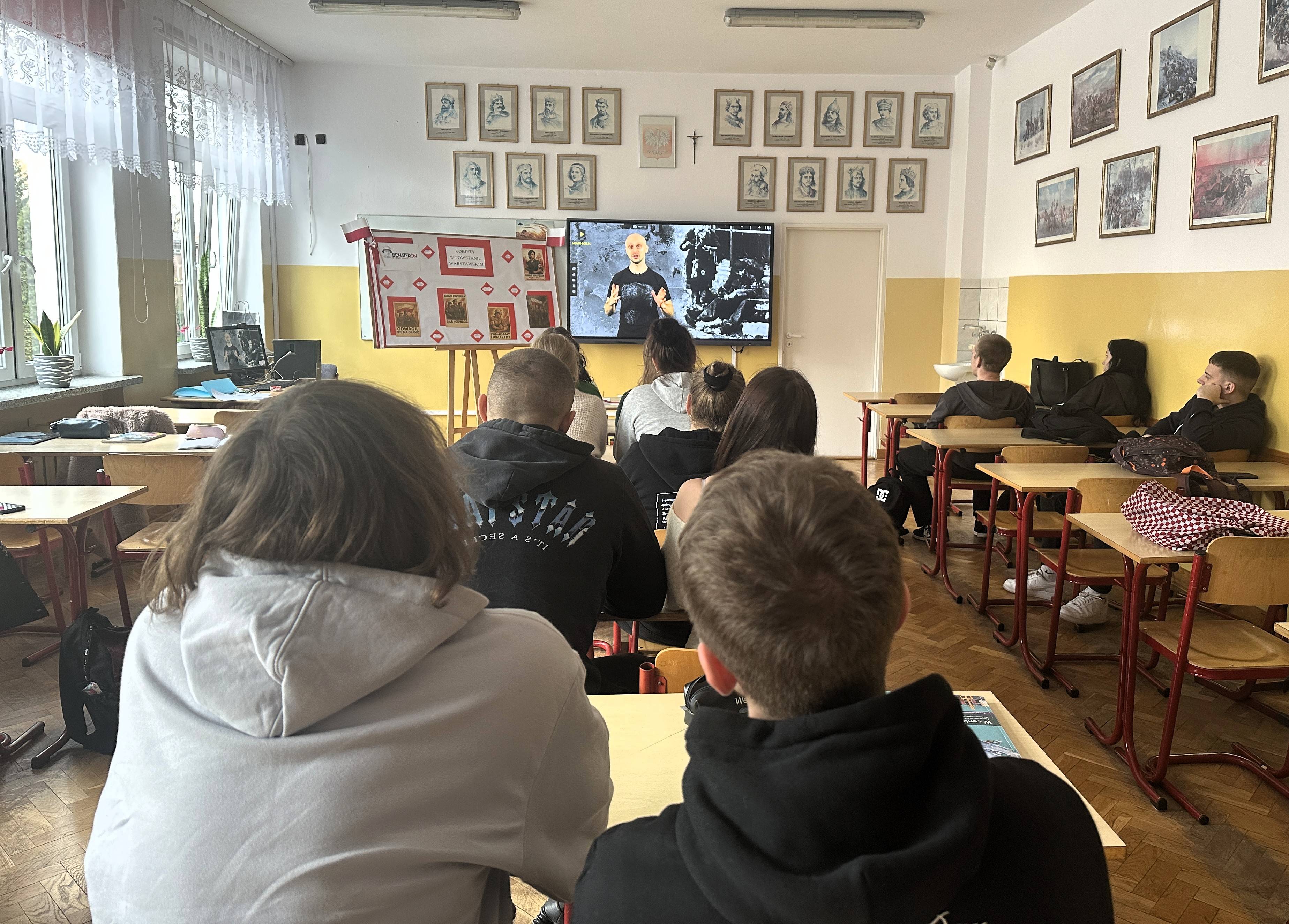 Młodzież z naszej szkoły uczestniczyła w zajęciach edukacyjnych przygotowanych na podstawie scenariuszy zaproponowanych przez organizatorów oraz zapoznała się z filmami edukacyjnymi dotyczącymi Powstania Warszawskiego. Niekonwencjonalny i przystępny styl opowiadania o historii zaciekawił nawet tych, dla których historia bywa trudna i odległa. Uczniowie po zakończeniu cyklu zajęć mieli możliwość podzielenia się refleksjami na temat udziału kobiet w powstaniu. Młodzież wykazała się niezwykle bogatą wiedzą na temat wydarzeń z sierpnia 1944 roku. Zgodnie z przesłaniem akcji uczniowie pokazali, że pamiętają o Powstańcach i są dumni z ich bohaterskiej postawy. W tym celu wykonali plakaty i tablicę o tematyce powstańczej.