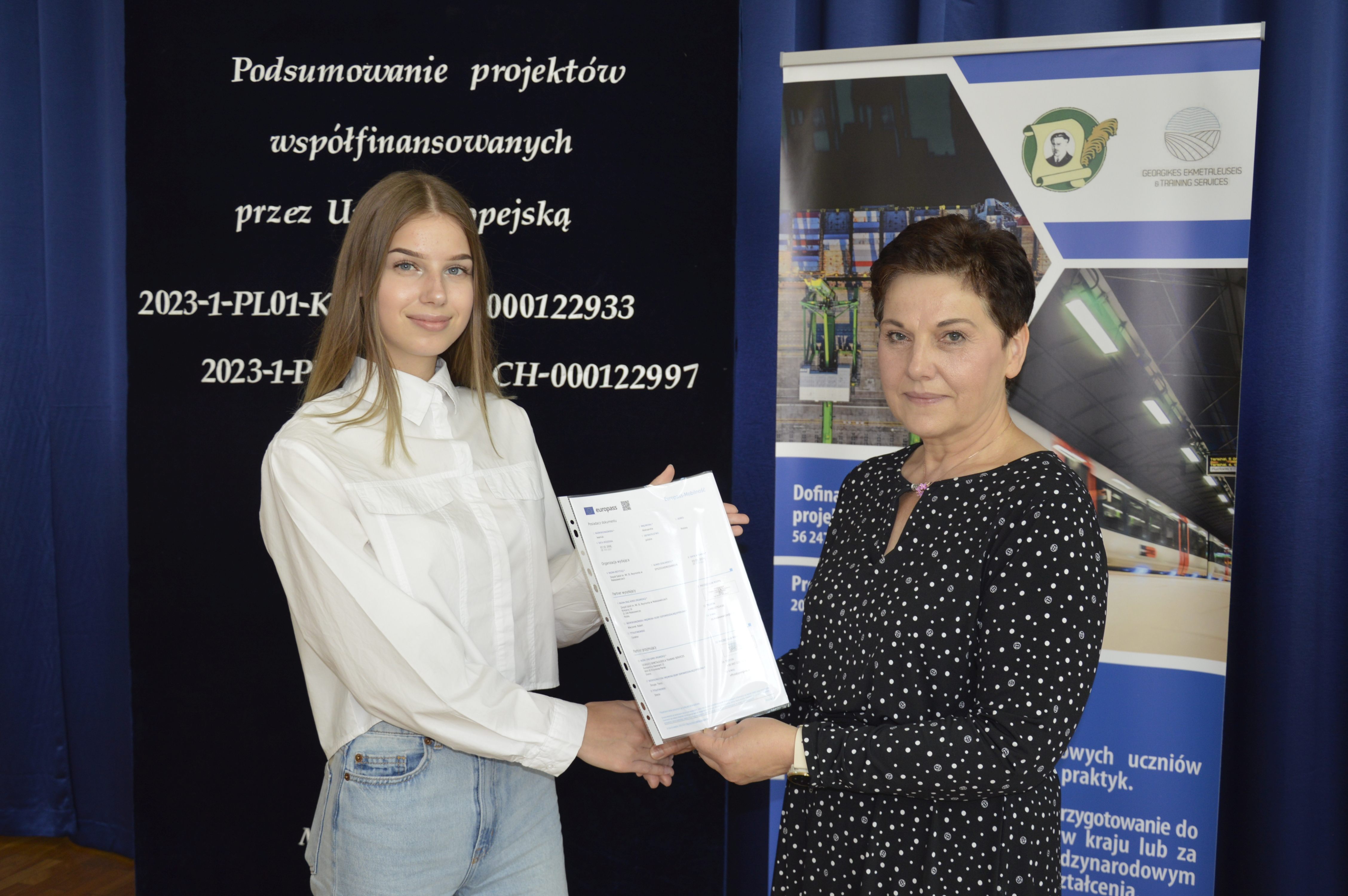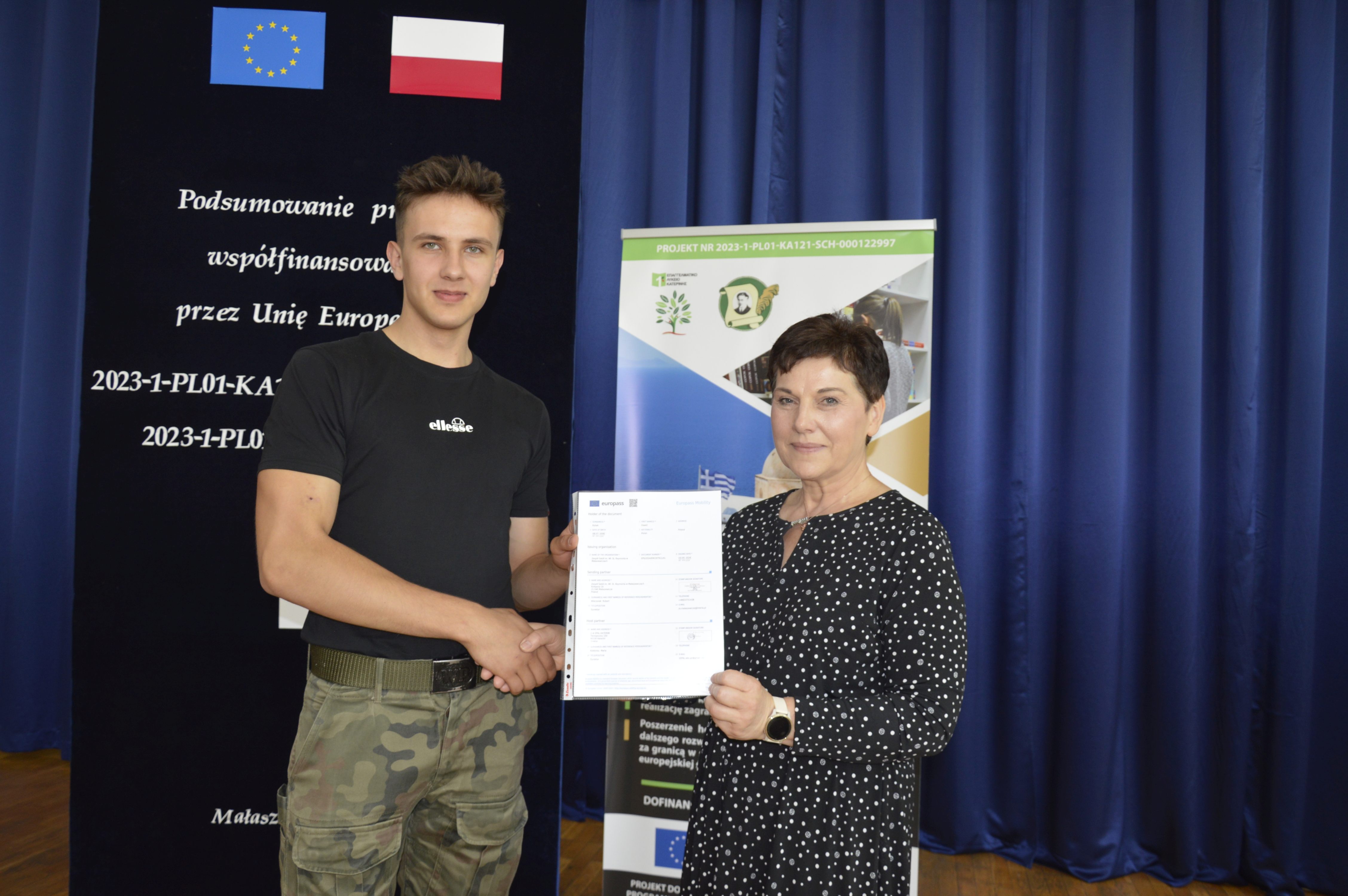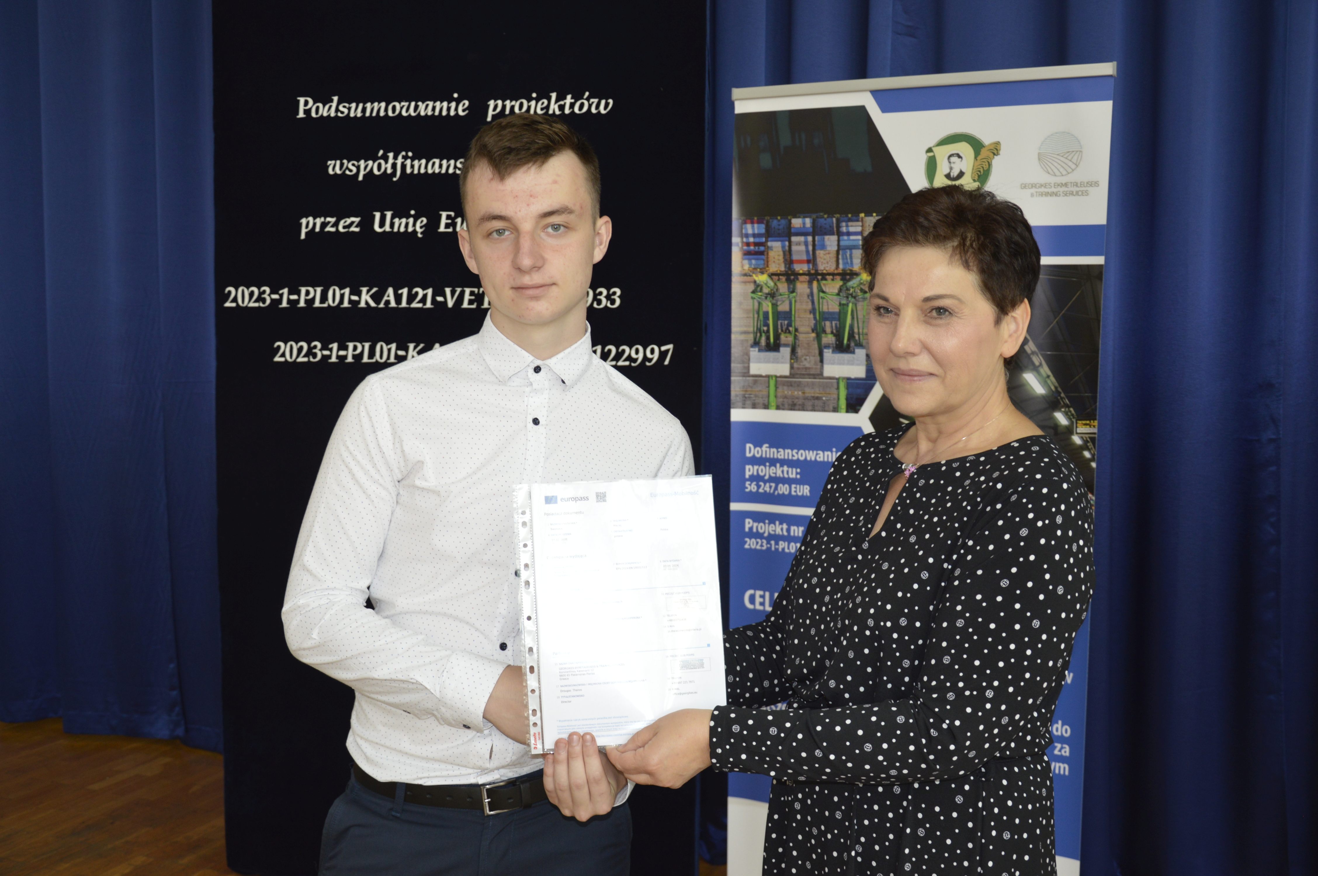 Zarówno zajęcia kulturowo-językowe licealistów, jak i staże młodych techników oraz szkolenia kadry były bardzo wartościowe, ponieważ dostarczyły wielu pozytywnych wrażeń i nowych doświadczeń – o czym wspominano na podsumowaniu obu wyjazdów, które miało miejsce 21 czerwca 2024 r. Na spotkaniu tym uczniowie jeszcze raz podzielili się przeżyciami, pochwalili osiągnięciami oraz powrócili myślami do tych wspaniałych chwil i przygód. Dokonali także ewaluacji projektów. Na zakończenie Pani Wicedyrektor Jolanta Wałach wręczyła młodzieży certyfikaty oraz dokumenty Europass potwierdzające odbycie zagranicznych wyjazdów i staży. Europass to obecnie bardzo ważny dokument o znaczeniu międzynarodowym, a łącznie z certyfikatem jest czytelnym i przejrzystym poświadczeniem zdobytych umiejętności i kompetencji we wszystkich krajach Unii Europejskiej.