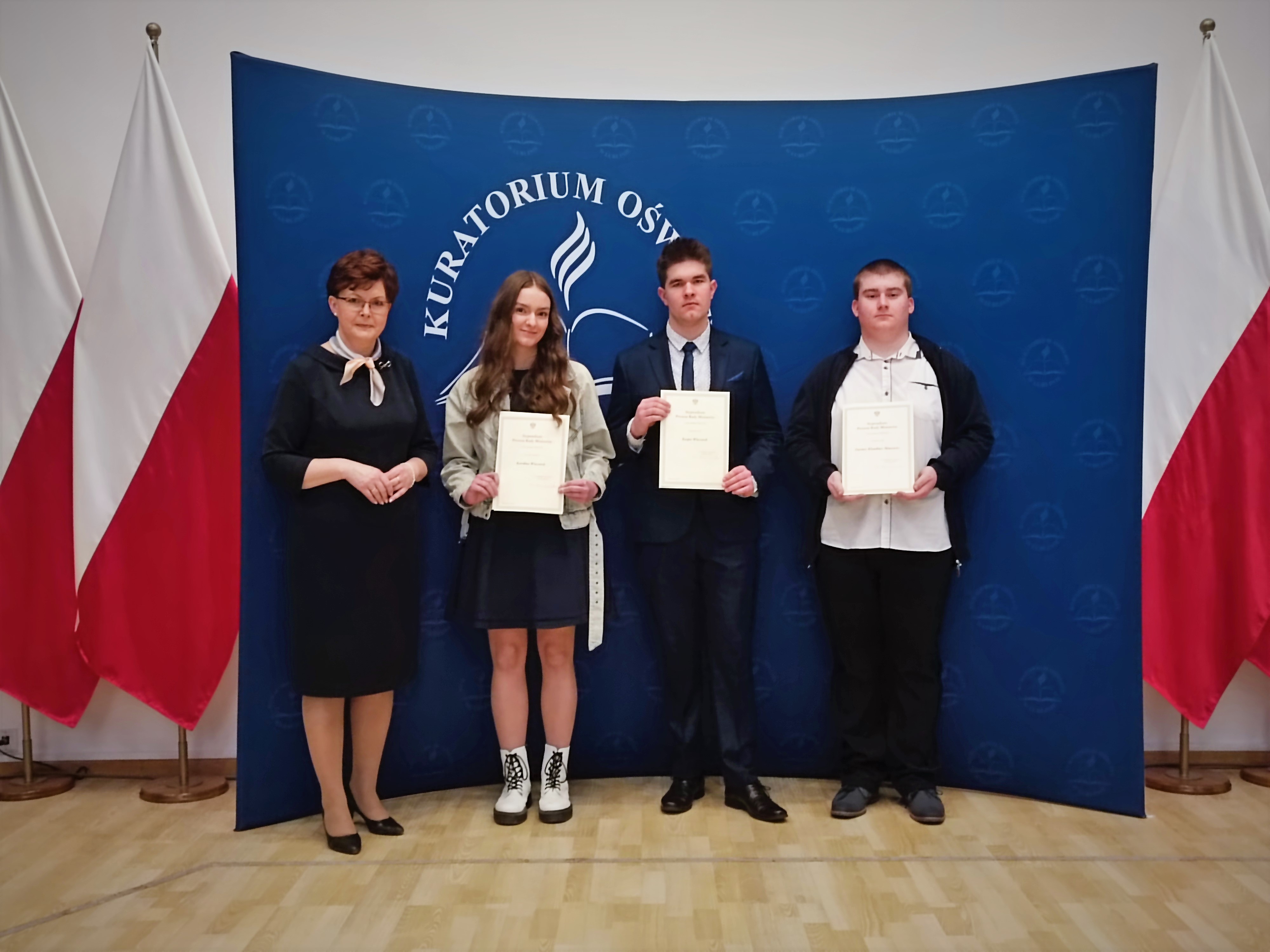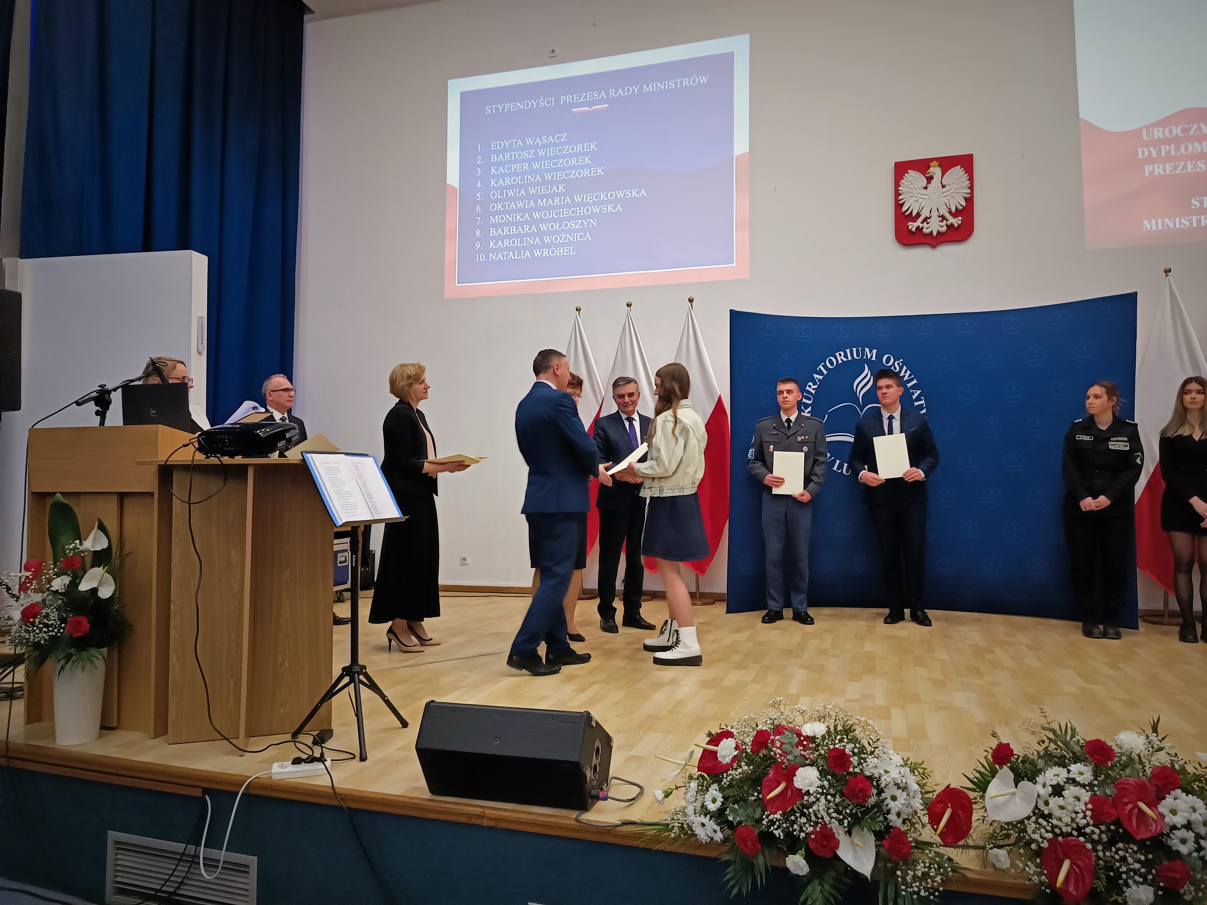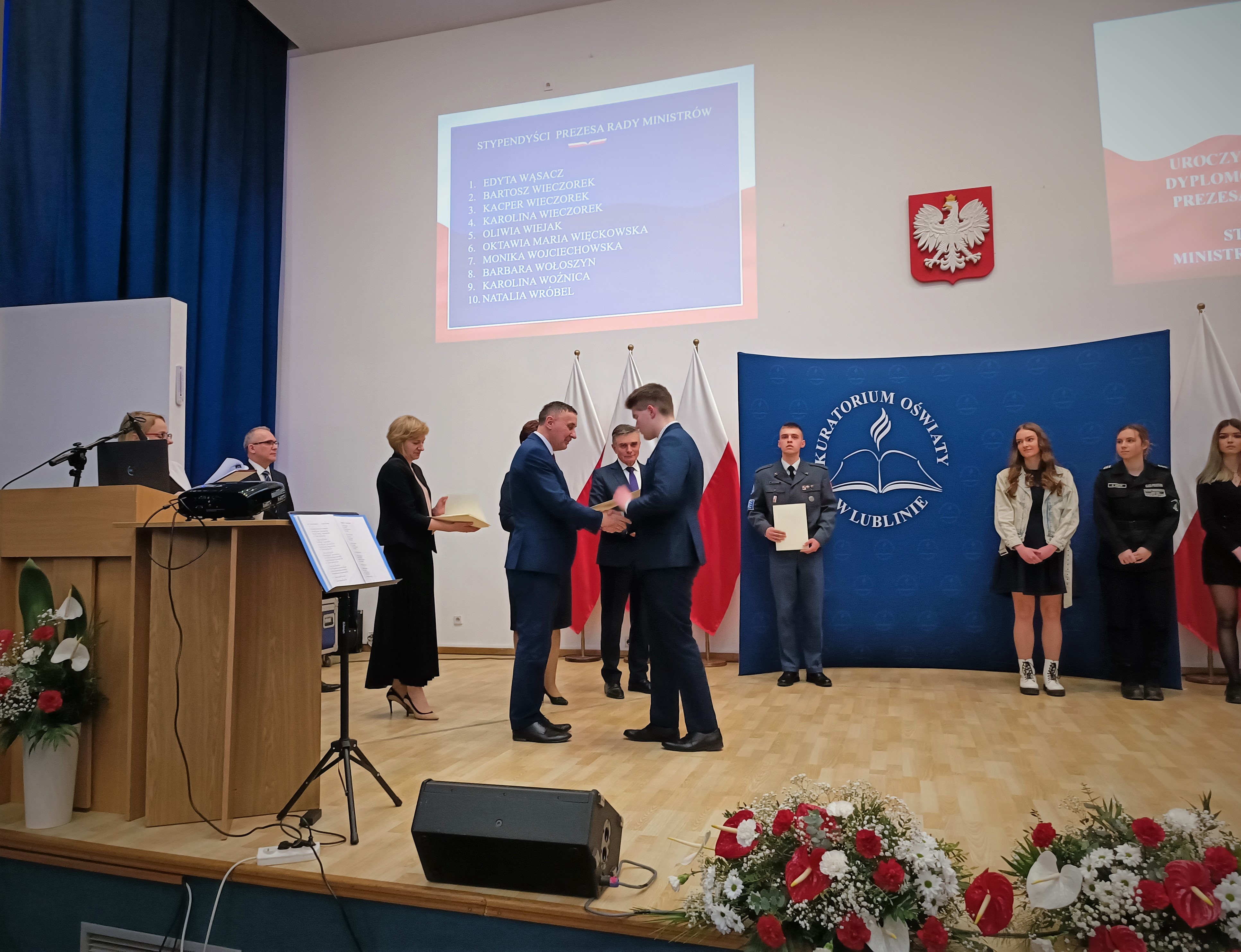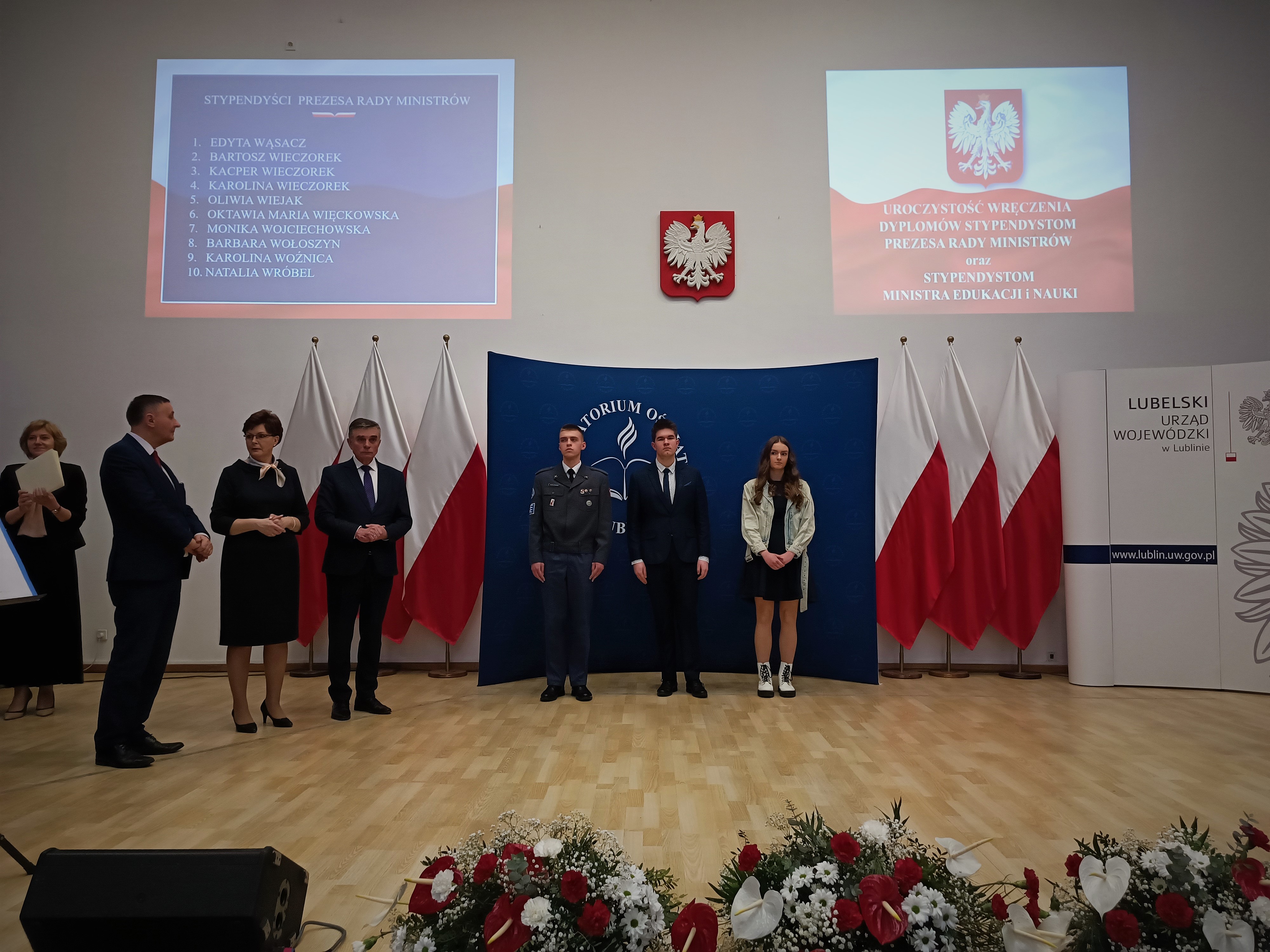 20 lutego w Lubelskim Urzędzie Wojewódzkim w Lublinie miało miejsce prestiżowe wydarzenie - aż troje naszych uczniów - Kacper Wieczorek, Karolina Wieczorek i Dariusz Mincewicz - oficjalnie otrzymali Stypendia Prezesa Rady Ministrów. Te prestiżowe wyróżnienia oraz dyplomy naszym najzdolniejszym wychowankom wręczyli m.in. Wojewoda Lubelski Pan Lech Sprawka oraz Lubelski Kurator Oświaty Pani Teresa Misiuk.
