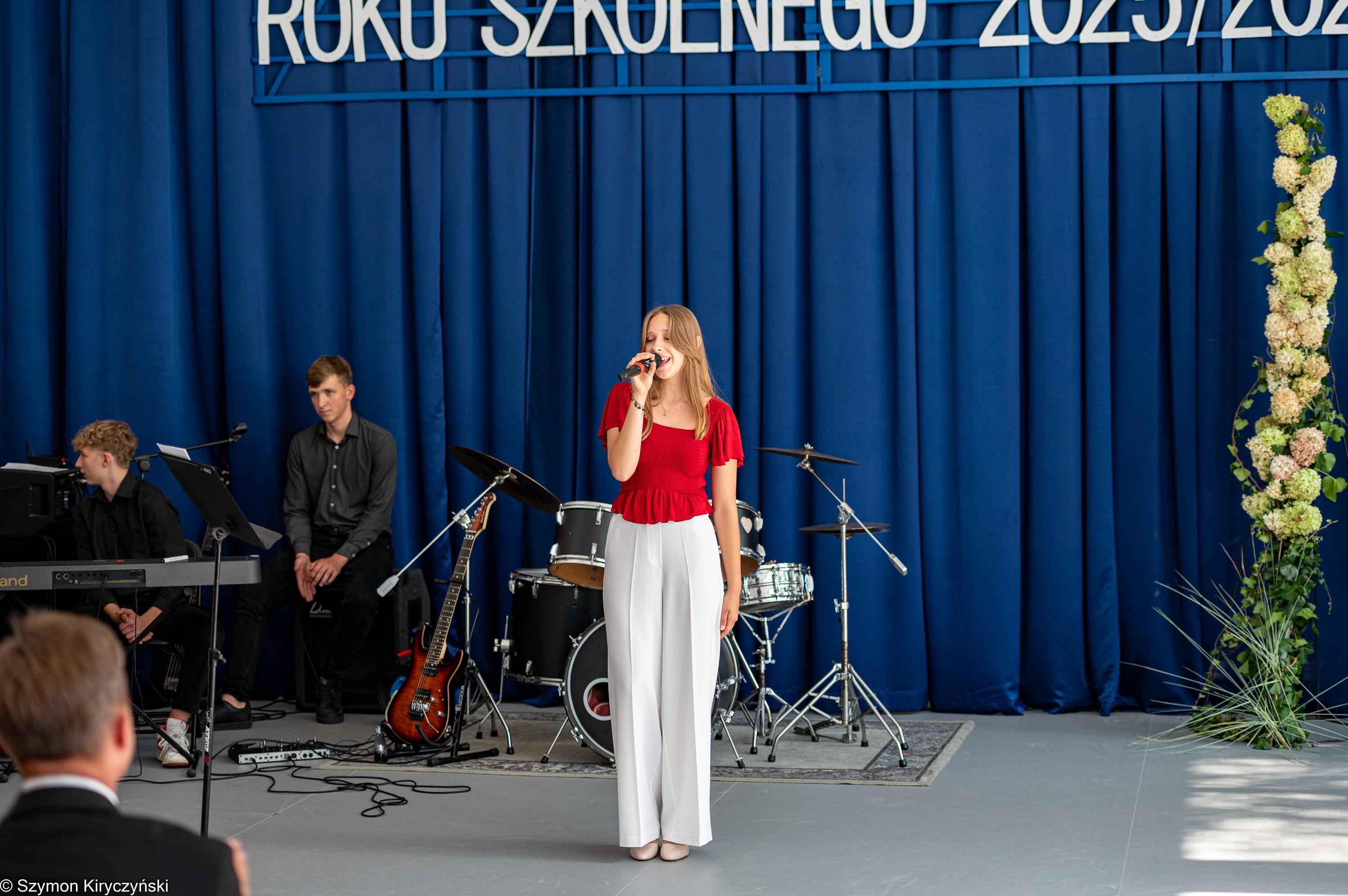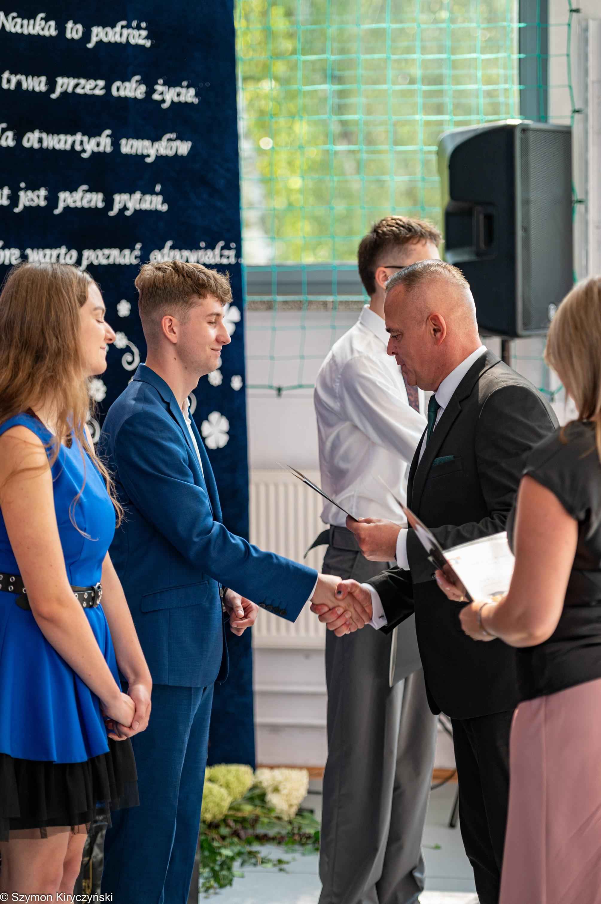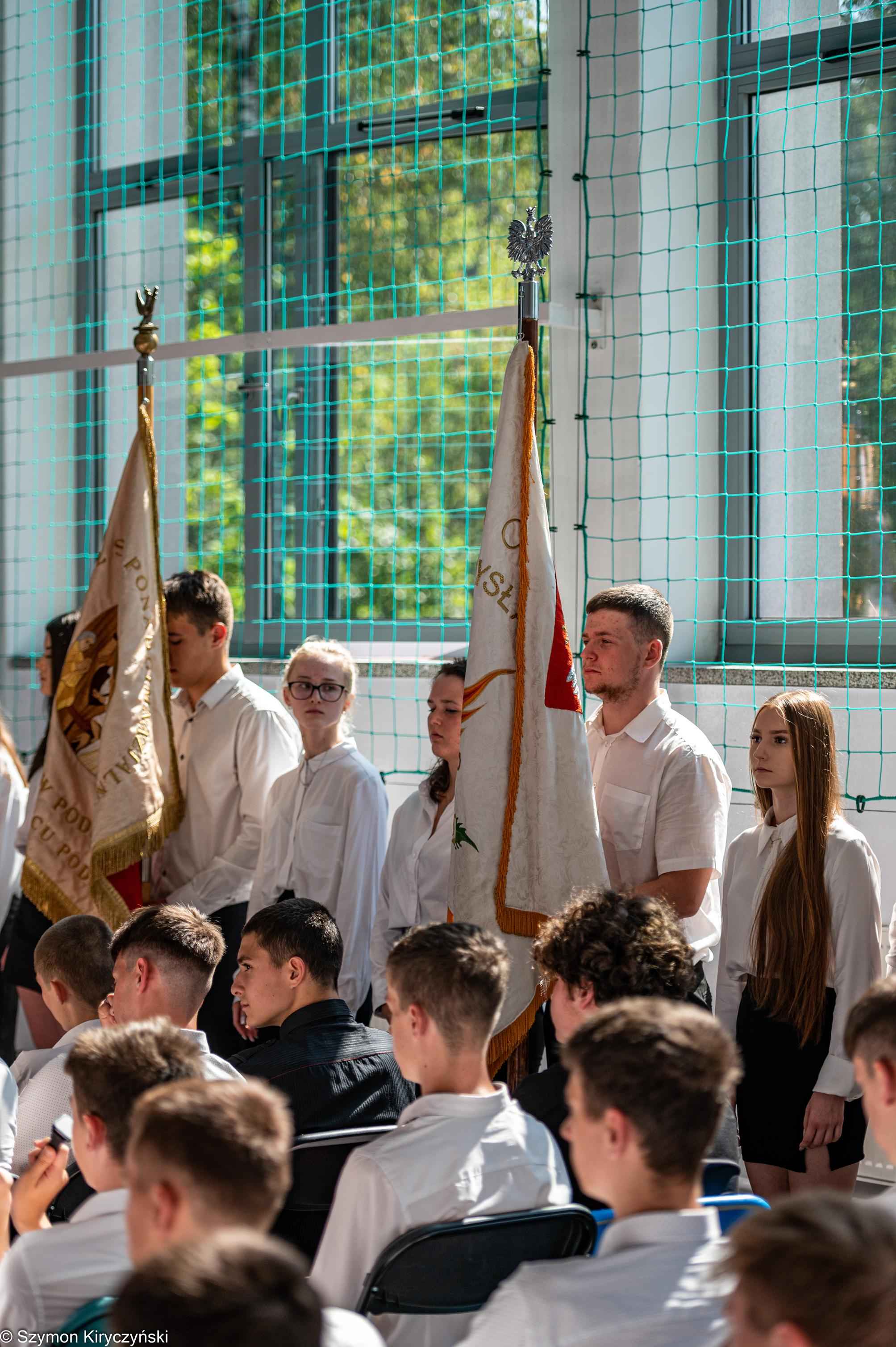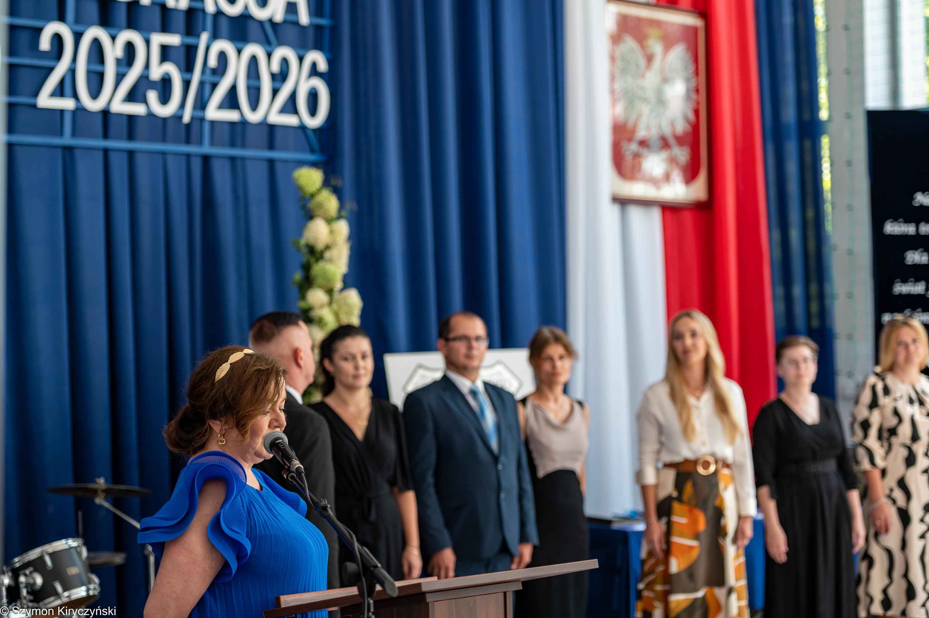 Na zakończenie prowadzący uroczystość: Amelia Kupryś i Szymon Kowaluk podziękowali wszystkim za uczestnictwo w inauguracji roku szkolnego 2025/2026. Życzyli wiele pomyślności i spełnienia marzenia, dumy i radości z osiągnięć w pracy zawodowej. Niech będzie to czas inspiracji i wspólnej podróży ku wiedzy.