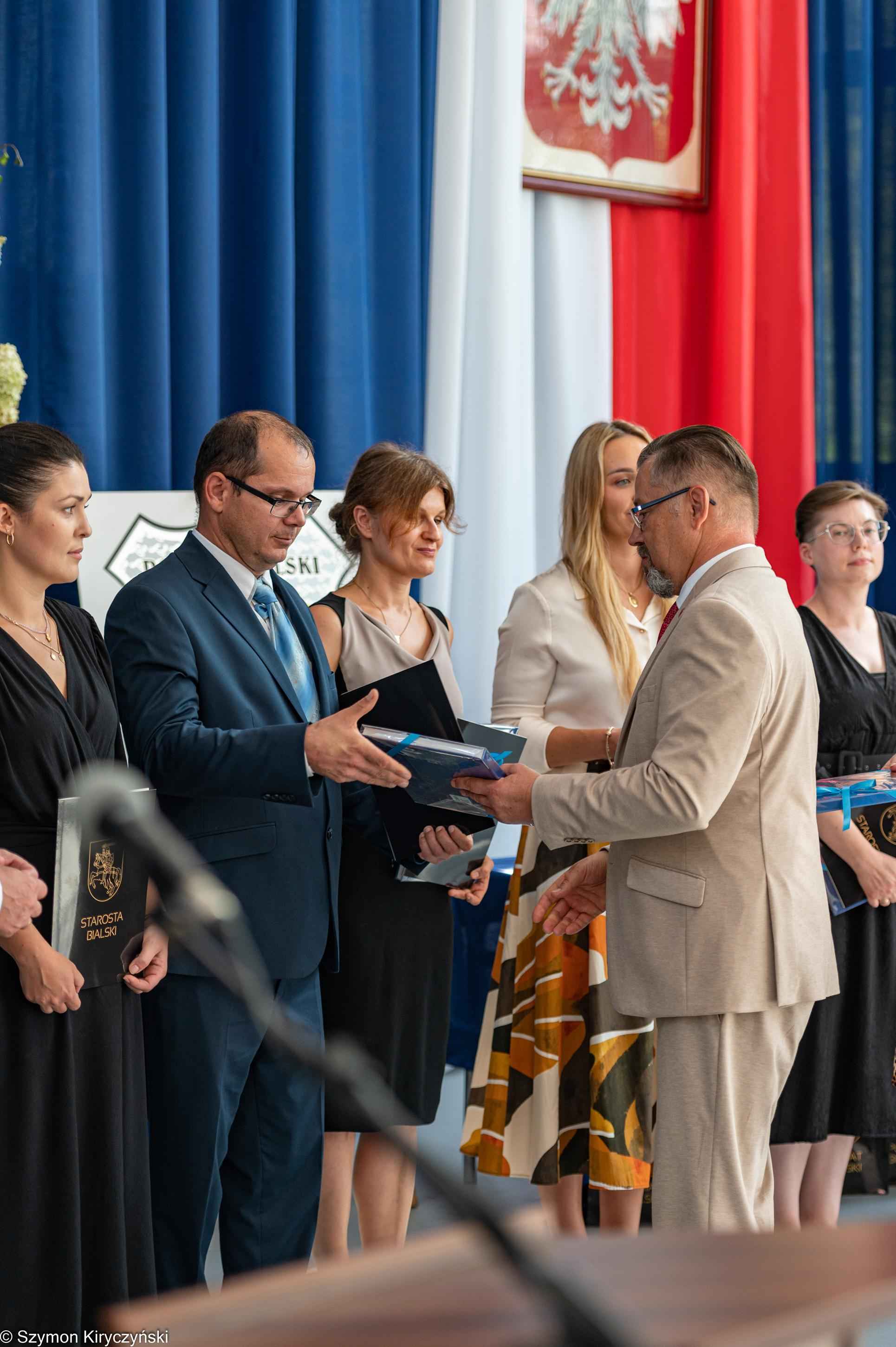 Gospodarzami uroczystości inaugurującej nowy roku szkolnego byli: pan Mariusz Filipiuk – Starosta Bialski i pan Robert Wieczorek – dyrektor Zespołu Szkół w Małaszewiczach. W swoich przemówieniach powitali uczestników spotkania i zwrócili się do społeczności szkolnych z powiatu bialskiego, życząc sukcesów, satysfakcji i radości z podejmowanych działań. Podczas uroczystości wręczone zostały akty nadania stopnia awansu zawodowego nauczyciela mianowanego. Starosta Bialski ufundował również stypendia najlepszym tegorocznym maturzystom ze szkół prowadzonych przez Powiat Bialski. Wśród wyróżnionych znalazły się dwie absolwentki Zespołu Szkół im. Wł. St. Reymonta w Małaszewiczach: Karolina Wieczorek i Izabela Marczak.