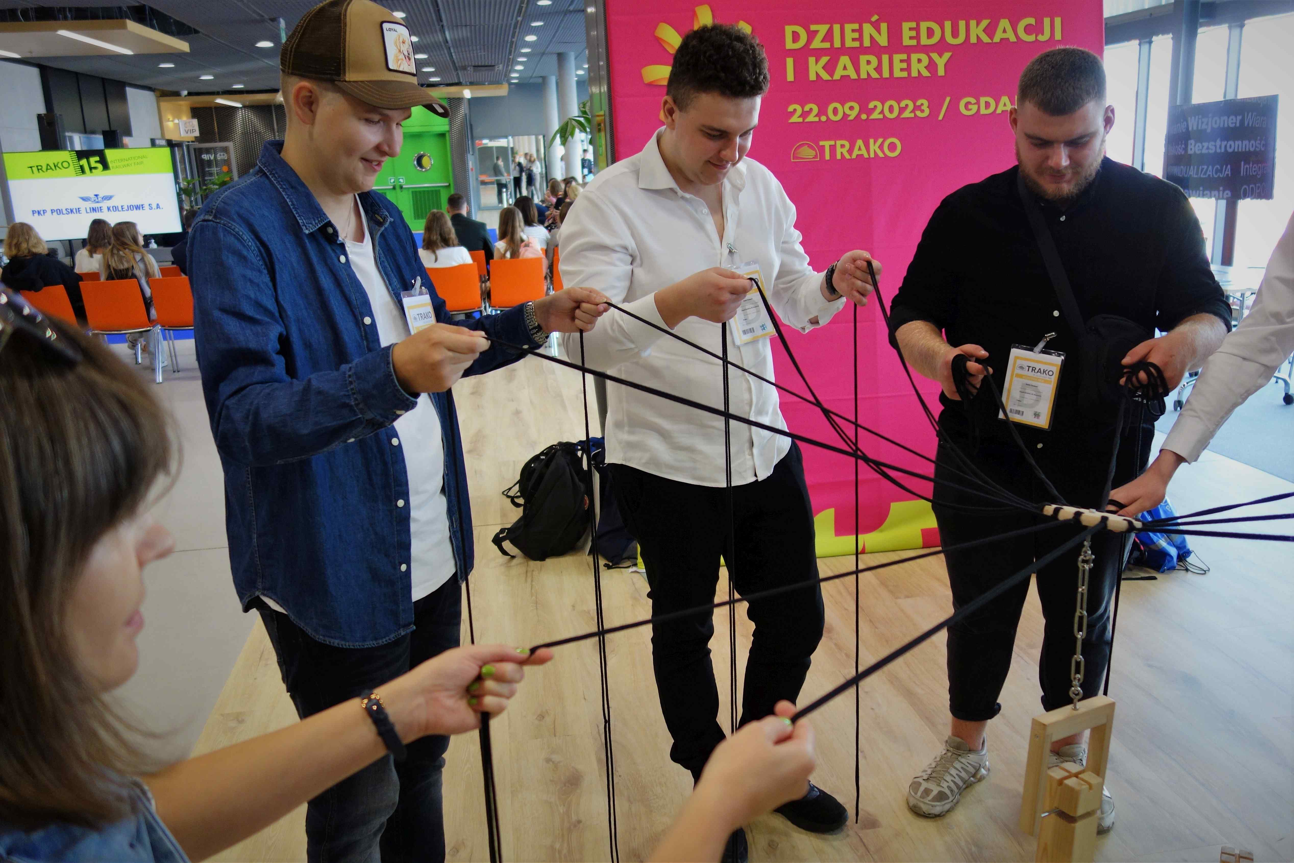 W dniach 21-22 września dziewięciu uczniów naszej szkoły uczestniczyło w jednym z najważniejszych wydarzeń branży kolejowej, czyli w 15. Międzynarodowych Targach Kolejowych TRAKO 2023! Jest to cykliczna impreza dedykowana instytucjom, pracownikom, a także kandydatom do pracy na kolei, w tym także i uczniom oraz studentom kierunków kolejowych. Z tego powodu ostatni dzień targowy od kilku lat jest Dniem Edukacji i Kariery. Nasi uczniowie nie mogli zatem nie pojawić się na tej znakomitej branżowej imprezie. Pod opieką Pani Małgorzaty Trębickiej-Żuk wybrali się na to wydarzenie aż do Gdańska. Godne uwagi jest to, że wzięli udział w krajowych – ogólnopolskich drużynowych konkursach umiejętności i wiedzy kolejowej, a dokładniej w konkursach: „Maszynista – zawód z przyszłością” oraz „Transport kolejowy moją pasją”. I stała się rzecz absolutnie niesamowita! Absolutnie bez precedensu! Nasze drużyny okazały się… absolutnie bezkonkurencyjne! Szczególnie Jakub Chwesiuk (V DC), Dariusz Mincewicz (V DI) oraz Bartłomiej Zajko (V DC), którzy w konkursie „Transport kolejowy moją pasją” w doskonałym stylu zajęli 1. miejsce, pokonując jednocześnie drużyny z 17. innych szkół kolejowych z całej Polski!