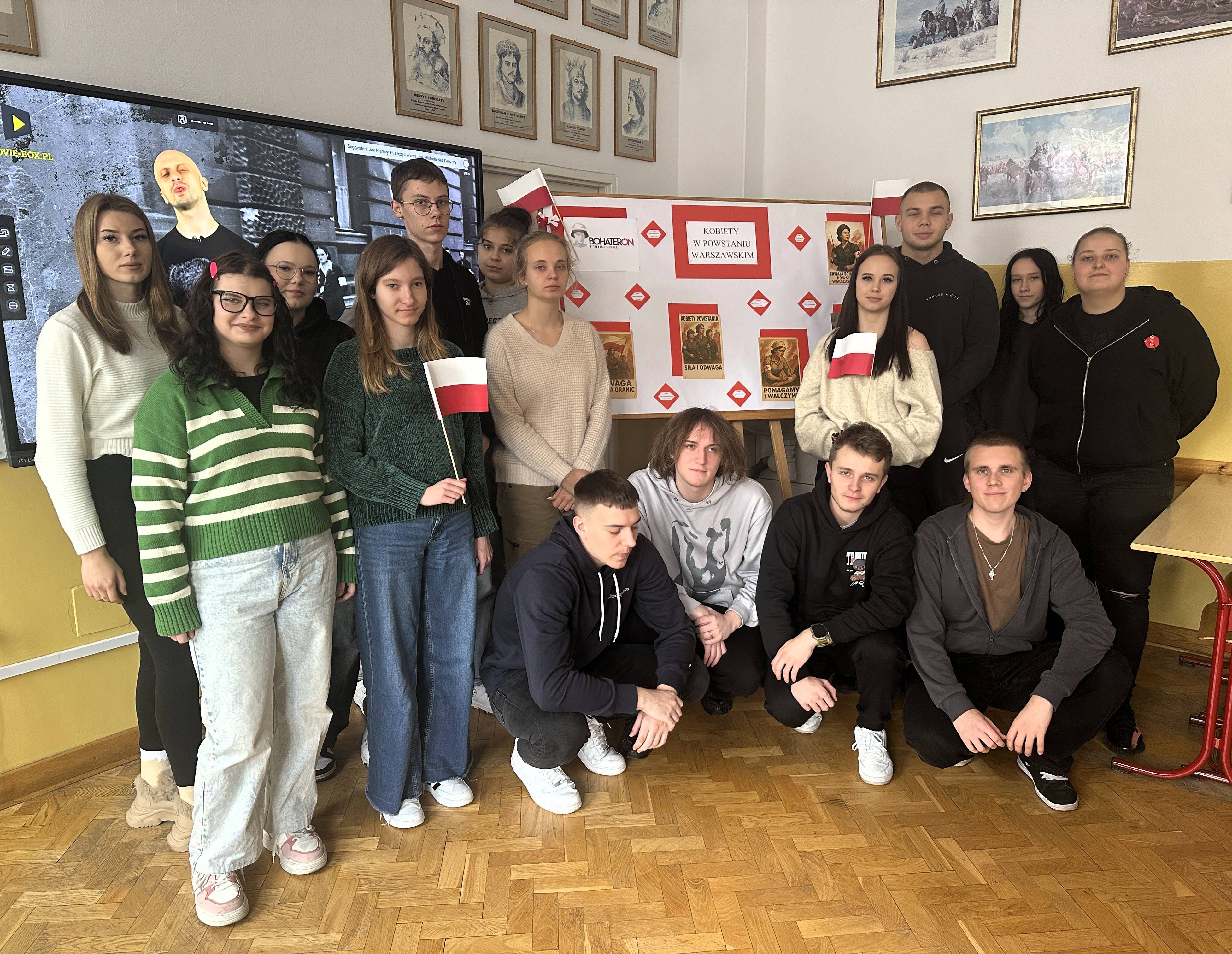 Młodzież z naszej szkoły uczestniczyła w zajęciach edukacyjnych przygotowanych na podstawie scenariuszy zaproponowanych przez organizatorów oraz zapoznała się z filmami edukacyjnymi dotyczącymi Powstania Warszawskiego. Niekonwencjonalny i przystępny styl opowiadania o historii zaciekawił nawet tych, dla których historia bywa trudna i odległa. Uczniowie po zakończeniu cyklu zajęć mieli możliwość podzielenia się refleksjami na temat udziału kobiet w powstaniu. Młodzież wykazała się niezwykle bogatą wiedzą na temat wydarzeń z sierpnia 1944 roku. Zgodnie z przesłaniem akcji uczniowie pokazali, że pamiętają o Powstańcach i są dumni z ich bohaterskiej postawy. W tym celu wykonali plakaty i tablicę o tematyce powstańczej.