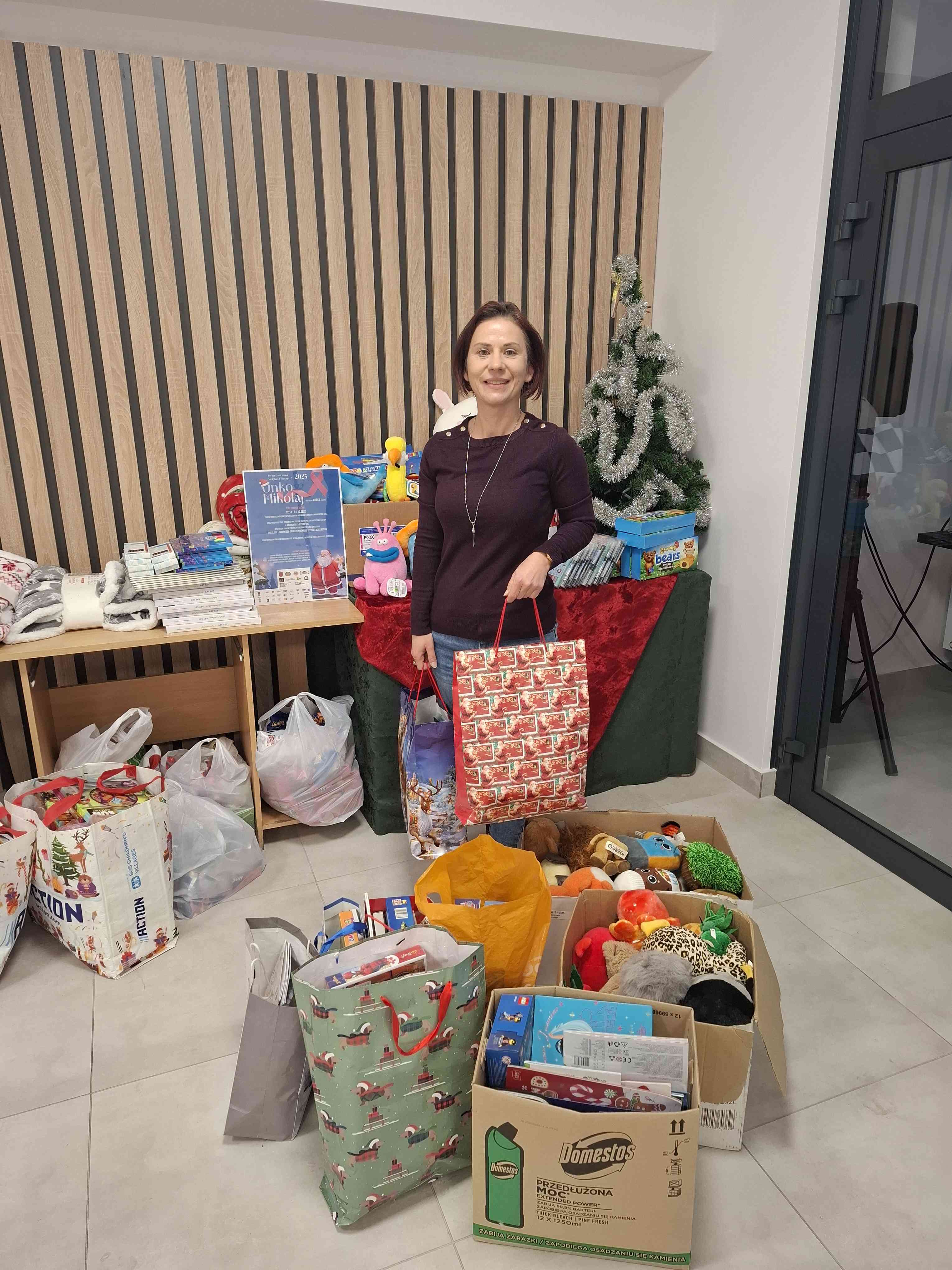 Zebrane upominki przekazaliśmy do współorganizatora – Gminnego Ośrodka Kultury w Sosnówce, który jest partnerem akcji. Uroczyste przekazanie prezentów małym pacjentom odbędzie się 4 grudnia 2025 r.