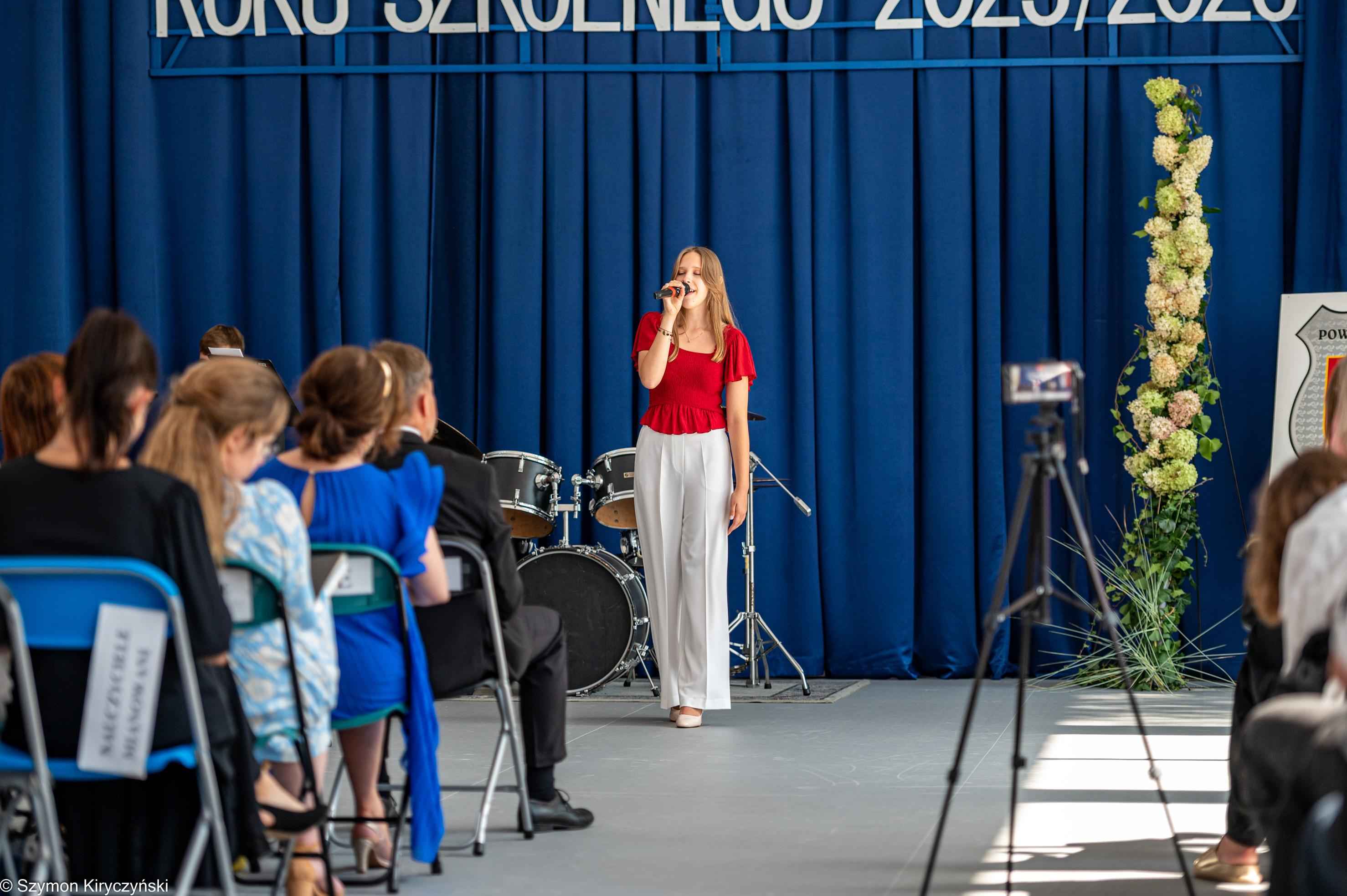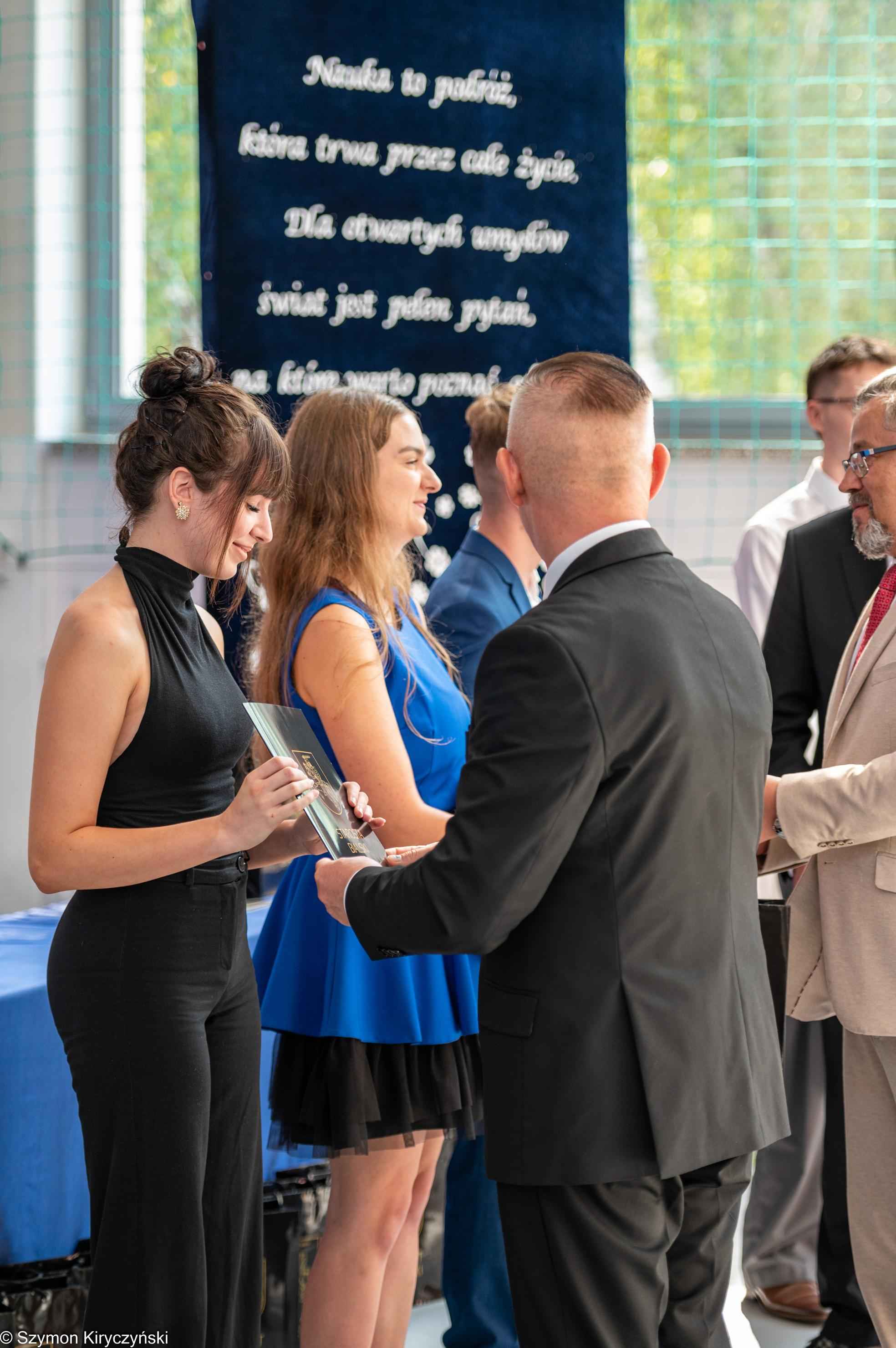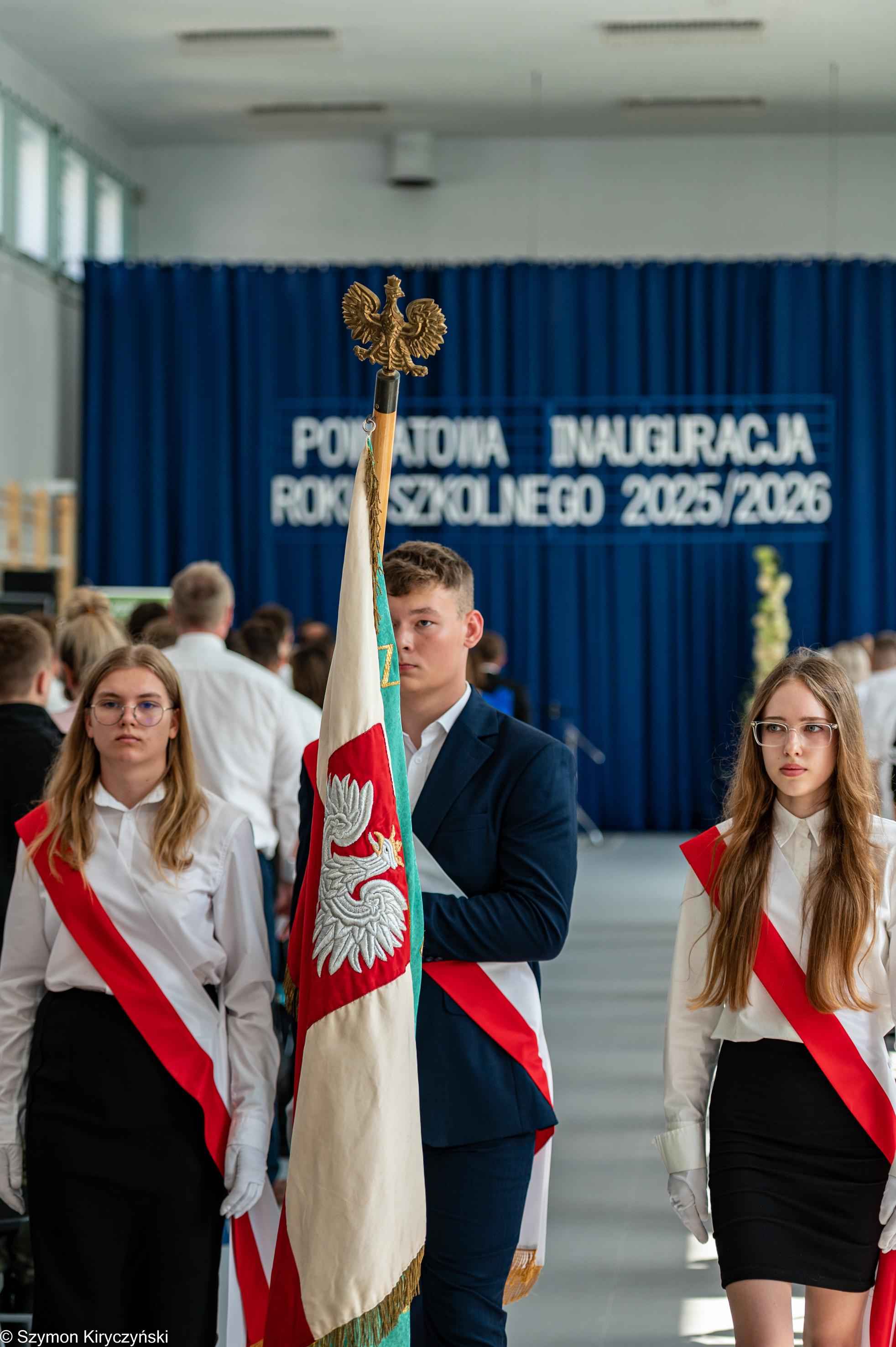 Na zakończenie prowadzący uroczystość: Amelia Kupryś i Szymon Kowaluk podziękowali wszystkim za uczestnictwo w inauguracji roku szkolnego 2025/2026. Życzyli wiele pomyślności i spełnienia marzenia, dumy i radości z osiągnięć w pracy zawodowej. Niech będzie to czas inspiracji i wspólnej podróży ku wiedzy.