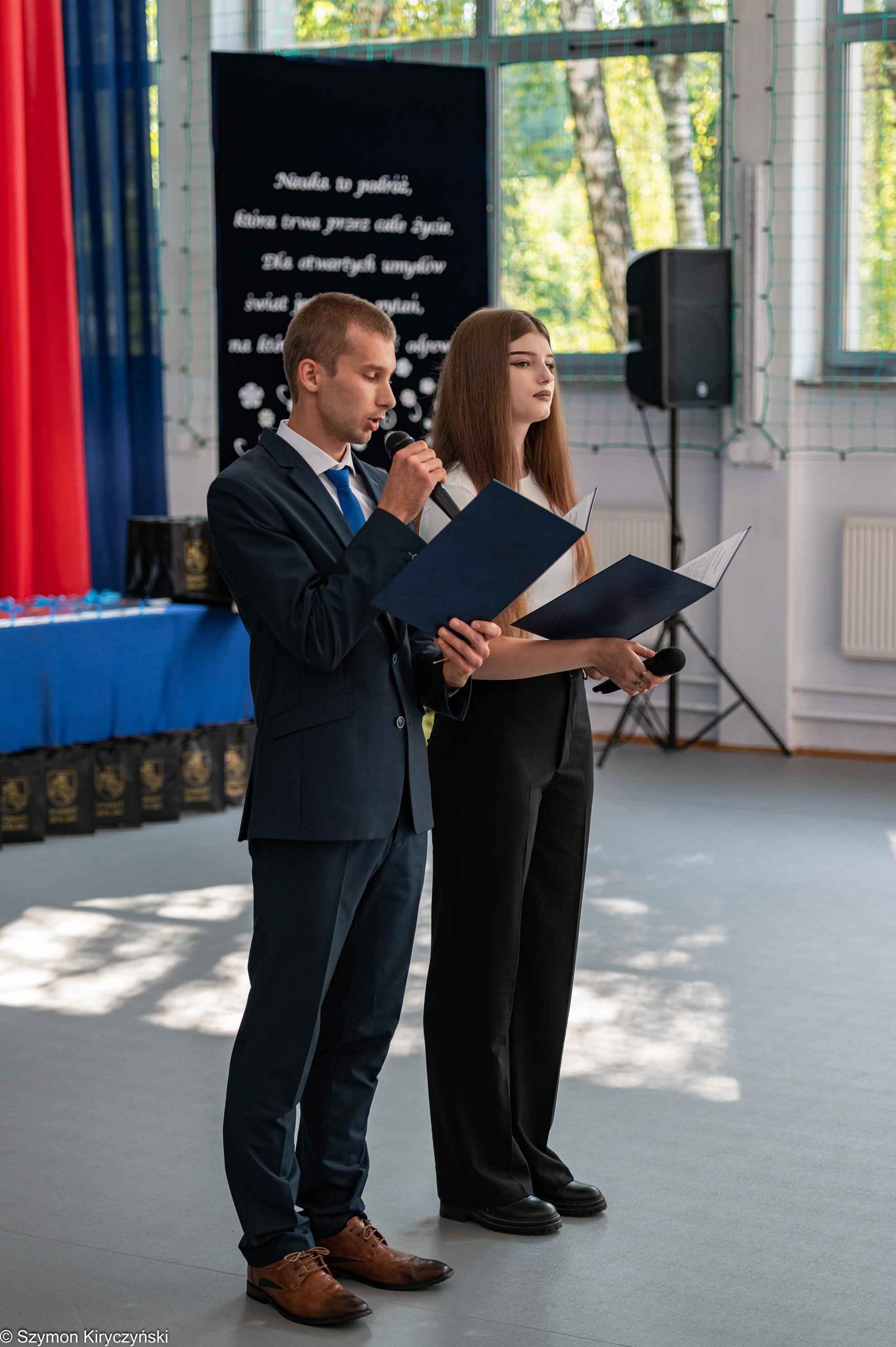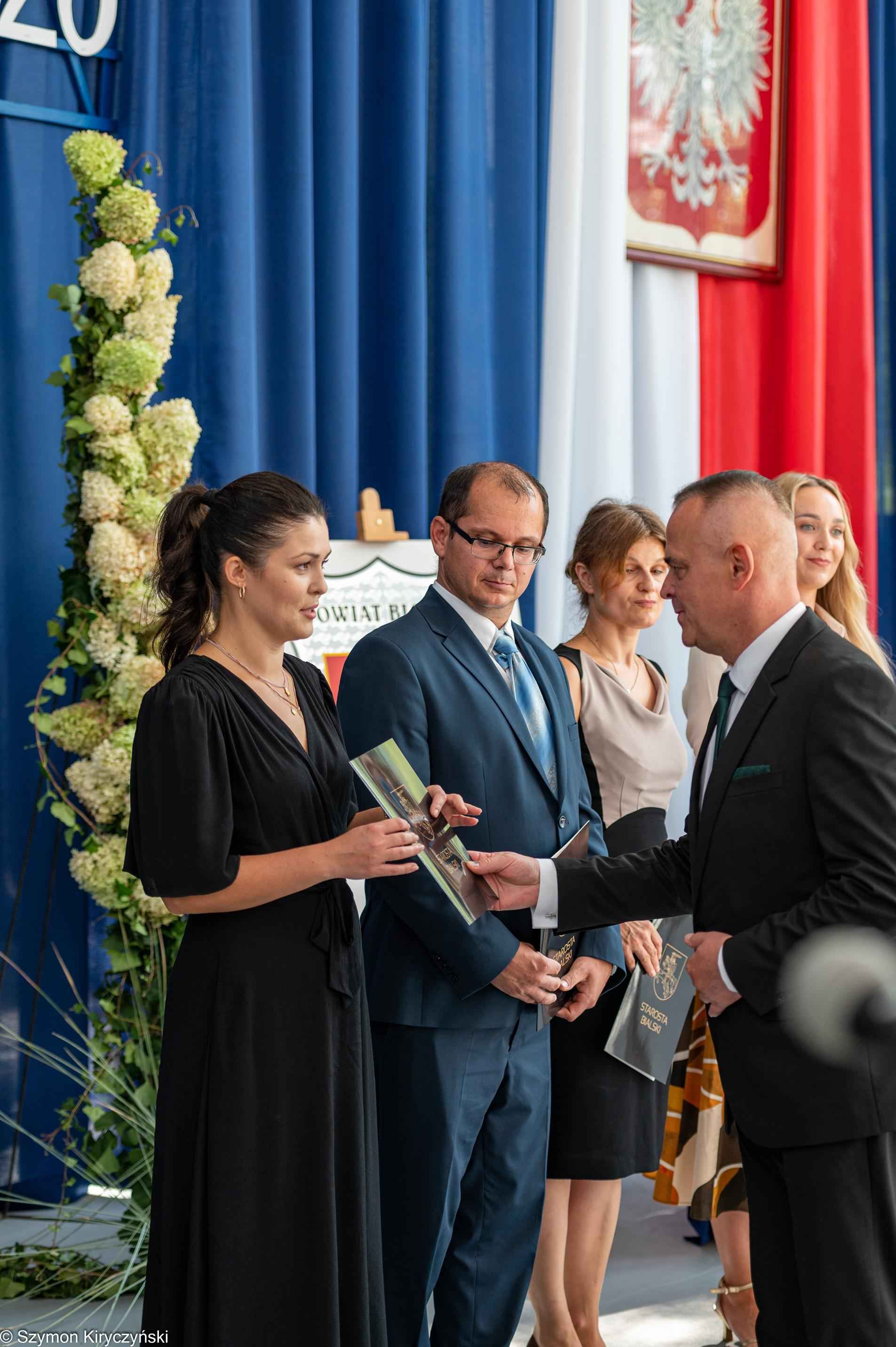 Gospodarzami uroczystości inaugurującej nowy roku szkolnego byli: pan Mariusz Filipiuk – Starosta Bialski i pan Robert Wieczorek – dyrektor Zespołu Szkół w Małaszewiczach. W swoich przemówieniach powitali uczestników spotkania i zwrócili się do społeczności szkolnych z powiatu bialskiego, życząc sukcesów, satysfakcji i radości z podejmowanych działań. Podczas uroczystości wręczone zostały akty nadania stopnia awansu zawodowego nauczyciela mianowanego. Starosta Bialski ufundował również stypendia najlepszym tegorocznym maturzystom ze szkół prowadzonych przez Powiat Bialski. Wśród wyróżnionych znalazły się dwie absolwentki Zespołu Szkół im. Wł. St. Reymonta w Małaszewiczach: Karolina Wieczorek i Izabela Marczak.